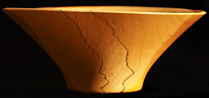 After spending thirty years involved in wood from house builder to cabinet maker to woodworker, I always seek the greatest solace from the wood itself. A local young man who is a woodturning prodigy tutored me in bowl turning in january or 2006 and I have been bowl crazy since. The process from cutting down the tree to cutting it open to turning it into a bowl that will outlast its maker is very gratifying.